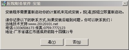 3、点击“是”电脑将会重启,也可以点击“否”不重启,软件一般也能正常运行。一般情况下建议点击“是”。